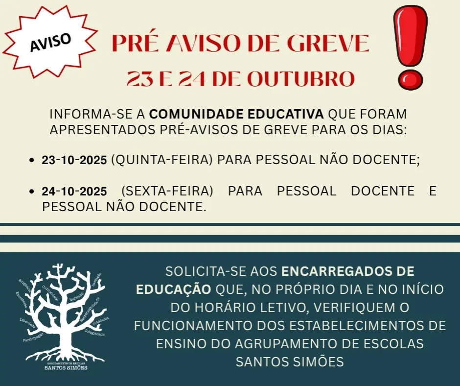 Deste modo, solicita-se aos Encarregados de Educação que, no próprio dia e no início do horário letivo, verifiquem o funcionamento dos estabelecimentos de ensino do Agrupamento de Escolas Santos Simões